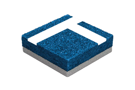 Покрытие «Мастеркорт» наносится наливным способом поверх резиновой основы с использованием двухкомпонентных полиуретановых составов. Такой подход обеспечивает монолитную бесшовную поверхность с равномерной окраской по системе цветов RAL. Укладка выполняется на подготовленное сухое основание при температуре от +15°C.